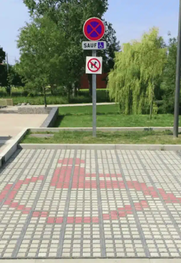 Jusqu’à 226 pavés colorés pour 1650 pavés sur la surface totale du stationnement PMR