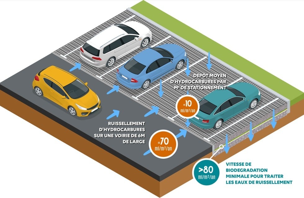 hydrocarbures sur parking eaux de ruissellement