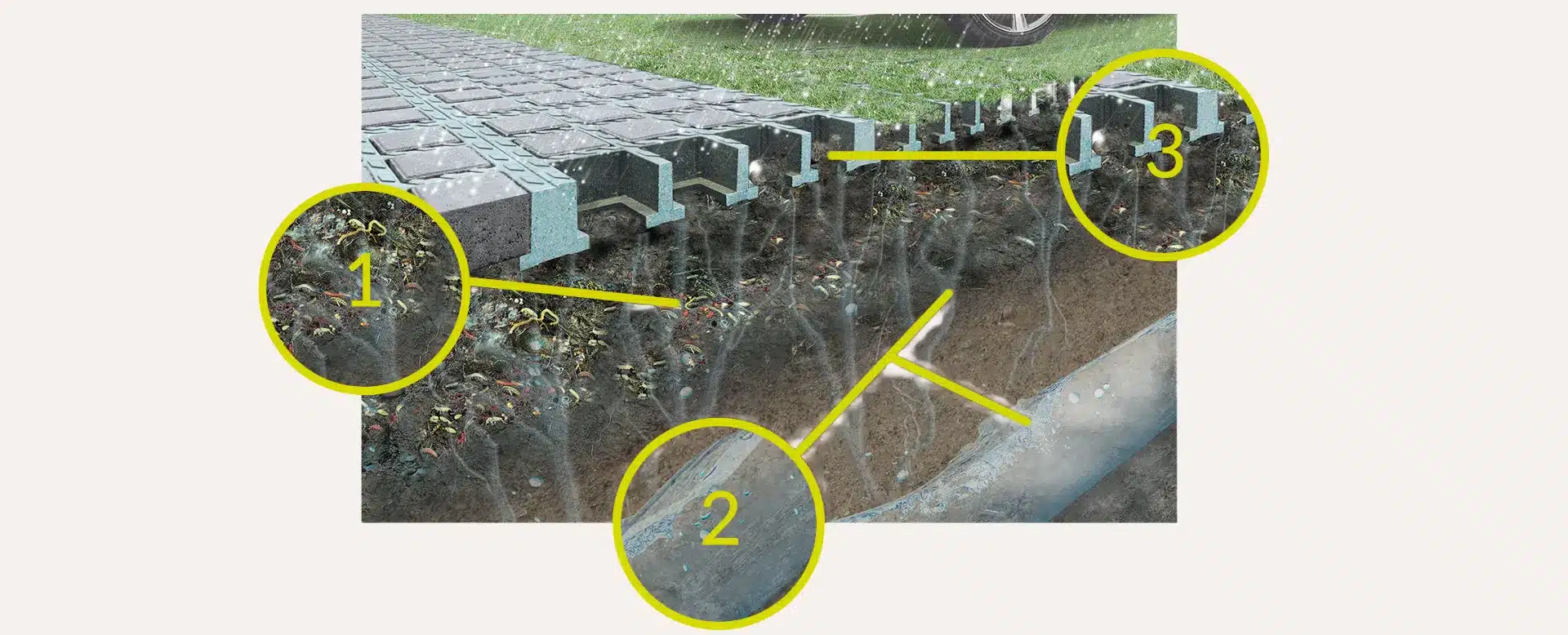 Découvrez comment les systèmes de sols perméables s’intègrent parmi les Solutions fondées sur la Nature.