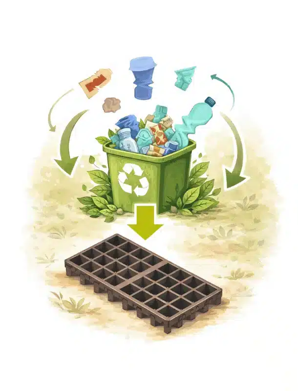 Un parking écologique construit avec le système TTE® répond aux objectifs de l’économie circulaire. La fabrication de la dalle TTE® Multidrain utilise à 100% des matériaux plastiques recyclés et recyclables. Cela permet la fabrication d’un produit très robuste, en lien avec son usage, doté d’une forte densité de matière. Son innocuité envers l’environnement et le vivant est certifiée.