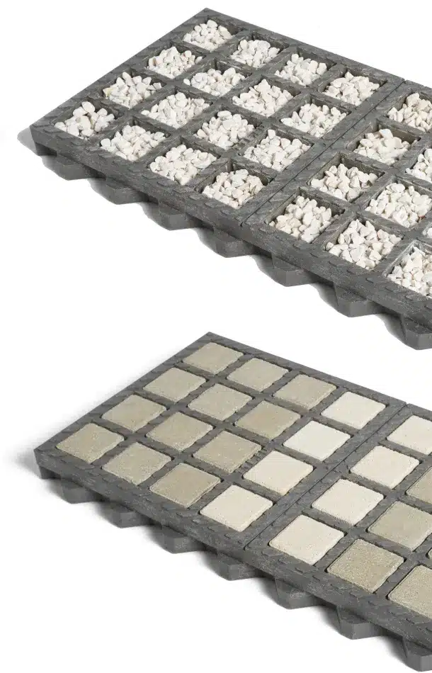 Grâce à leur modularité, les solutions TTE® s’adaptent à tous les projets, avec différentes finitions : O2D MINÉRAL, O2D PAVÉ, O2D GREEN, O2D MOSS et O2D MULCH. Cette diversité permet de créer des aménagements sur mesure, en combinant esthétique, performance et gestion durable des eaux pluviales.